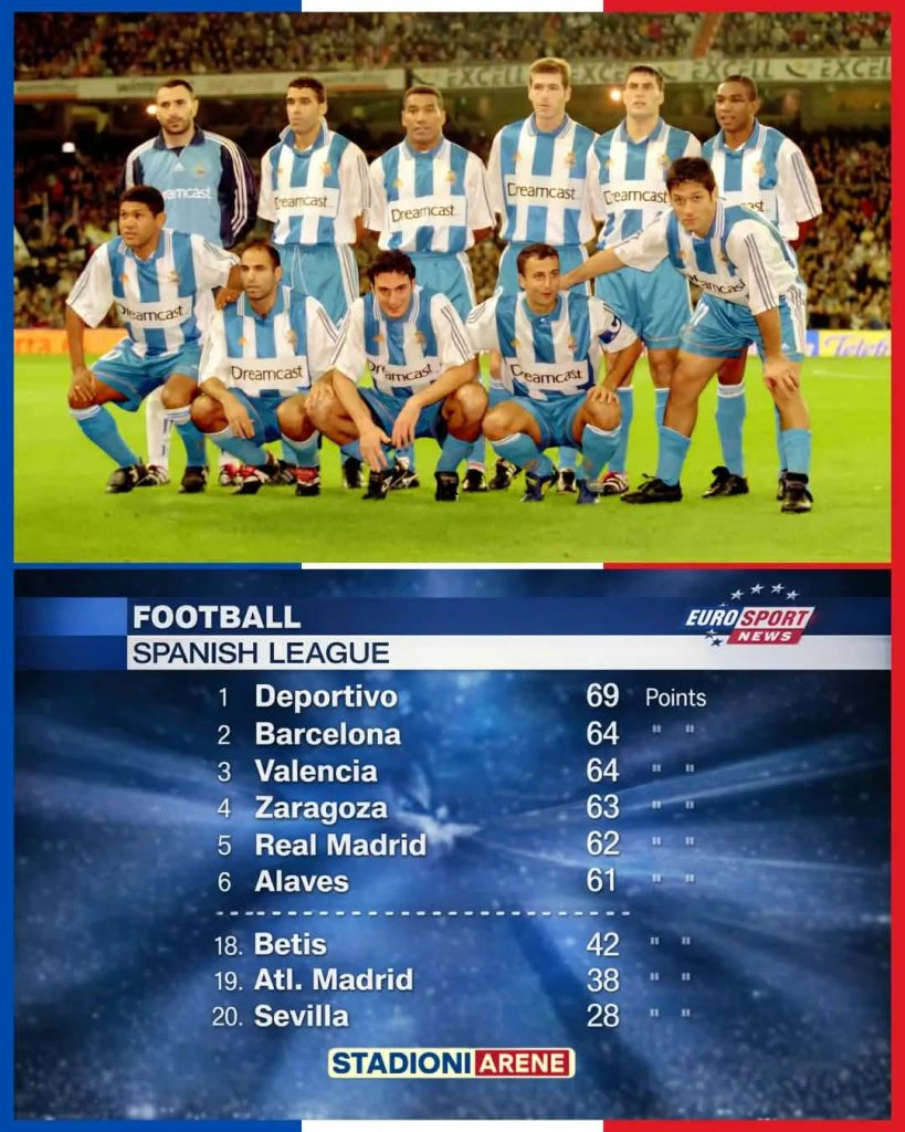 Η Ντεπορτίβο Λα Κορούνια πέρασε το μεγαλύτερο μέρος της δεκαετίας του 1970 και του 1980 στη Σεγούντα, μόνο και μόνο για να ζήσει το στέμμα της ύπαρξής της κατακτώντας τον μοναδικό τίτλο του πρωταθλητή Ισπανίας το 2000, ο οποίος έβαλε βάναυσα τέλος στην δεκαετιών κυριαρχία των δύο μεγάλων.